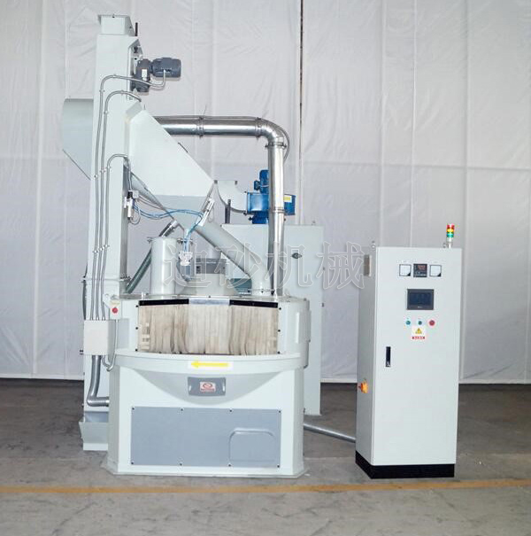 該設備輸送方式采用連續(xù)轉盤式,工件放置在小轉盤上(工裝上),大轉盤帶動小轉盤進入噴砂室,進入噴砂室后小轉盤自轉(工件自轉),實現(xiàn)邊噴邊轉。只需一個工人即可實現(xiàn)放取工件。其中大小轉盤驅動均裝有變頻調控,客戶可根據(jù)產品要求調節(jié)轉速。